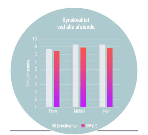 Synskvaliteten med SMYLE brilleglas er sammenlignelig med den hos enkeltstyrkeglas.