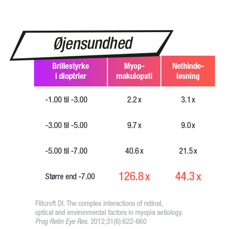 Hvis øjet bliver længere, kan øjets strukturer ændre sig, og risikoen for alvorlige øjensygdomme i senere voksenalder stiger mange gange.