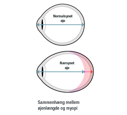 Et nærsynet øje er normalt længere end et normalsynet. Hvis barnets øje vokser mere end nødvendigt, bliver nærsynetheden stærkere, og der udvikles en myopiprogression. Det betyder, at der er en løbende stigning i brillernes værdier mod minus.