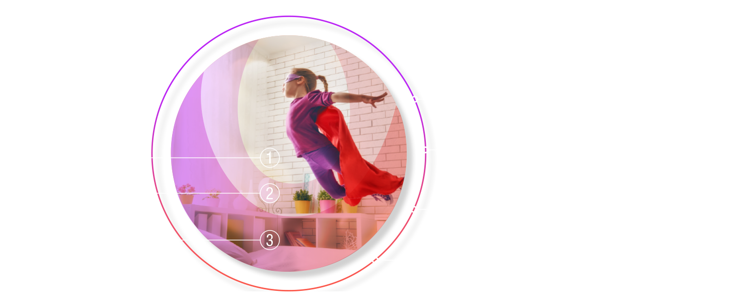 SMYLE brilleglas giver det bedste syn ved alle afstande takket være det centrale fuldt korrigerede område. Ved siden af ligger teknologizonerne, hvis særlige kendetegn består i, at tilpasningen til den naturlige asymmetri er afstemt til nethinden. Med det perifere defokus kan progressionen af øjets vækst reduceres og efterfølgende påvises, og med den integrerede addition understøttes akkomodationenen samtidig.