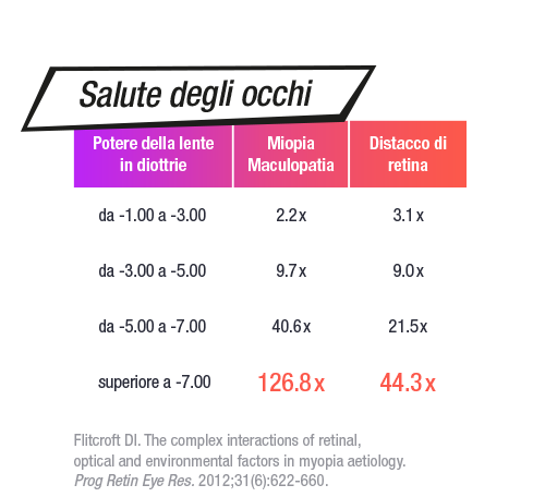 Se l’occhio cresce in lunghezza, le strutture dell’occhio possono cambiare e il rischio di gravi malattie oculari in età adulta aumenta molte volte.